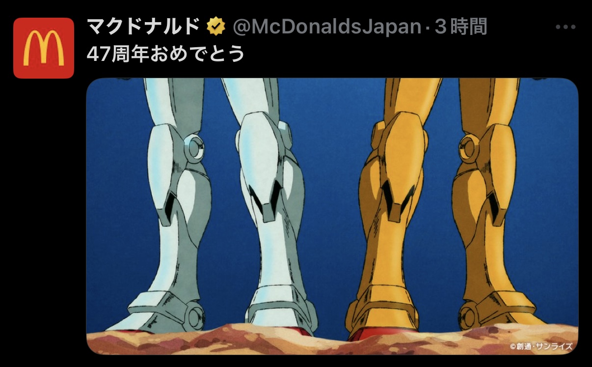 | … | 11無念Nameとしあき26/04/07(火)15:20:16No.1399202276+前回のコラボの時はシャア専用マクドナルドだったけど次はマックガンダムか |