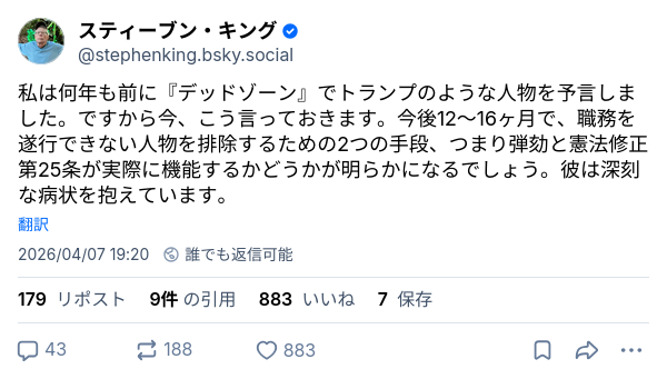 スティーブン・キングがアメリカに警告