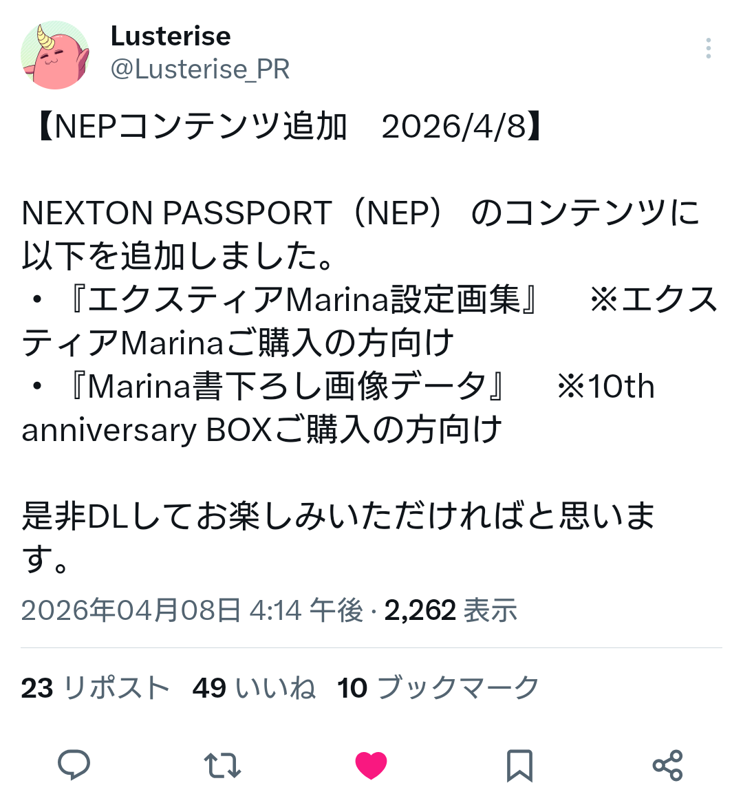| … | 45無念Nameとしあき26/04/08(水)22:27:17No.1399515669+>>今更思った事でまず公式が絶対にやらないとしてエクスティアとコラボした作品ってエクスマリナソーマが顕現する可能性あるの怖すぎない? |