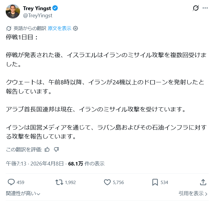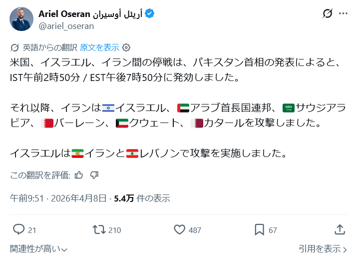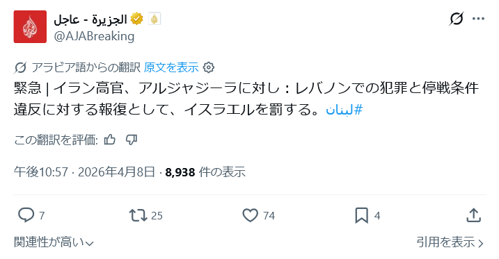 | … | 13無念Nameとしあき26/04/08(水)22:24:07No.1399514749+ 1775654647102.jpg-(154873 B) イラン側の停戦への声明 |