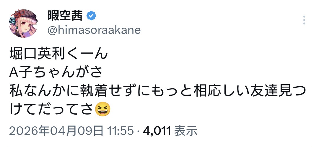 | … | 102無念Nameとしあき26/04/09(木)13:09:23 IP:60.78.*(bbtec.net)No.1399611087そうだねx2そんな暇空に空の字を使った使わないで序列がつく界隈がある訳が…ないと思いたい |