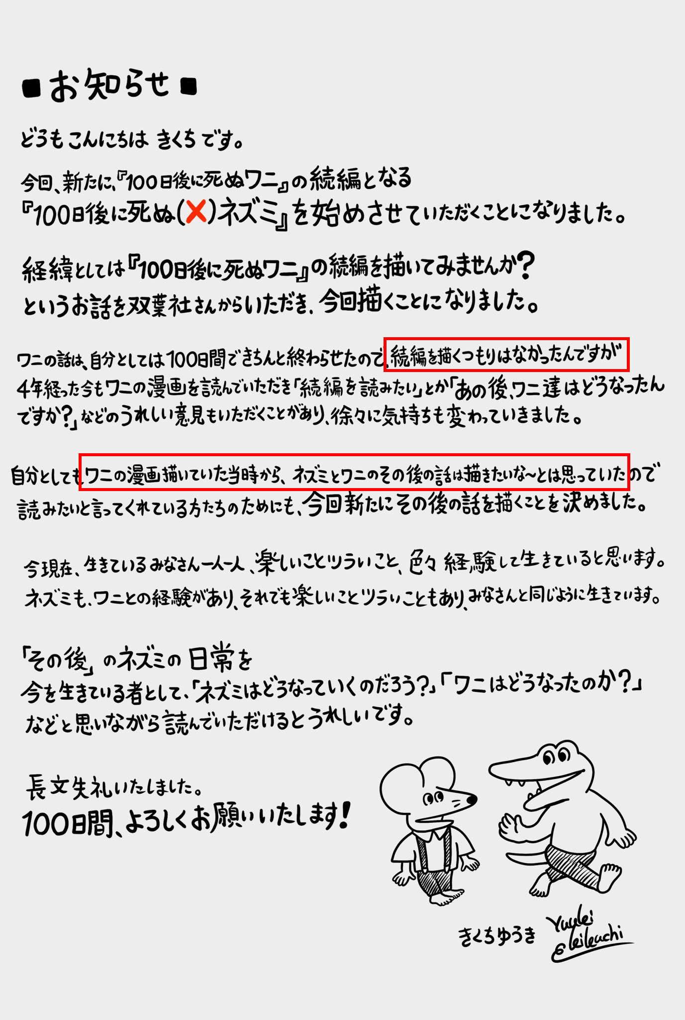 | … | 47無念Nameとしあき26/04/12(日)01:19:07No.1400216538+>新ワニも「ワニとネズミの日常です」しか言ってなくて時間軸とか一切不明 |