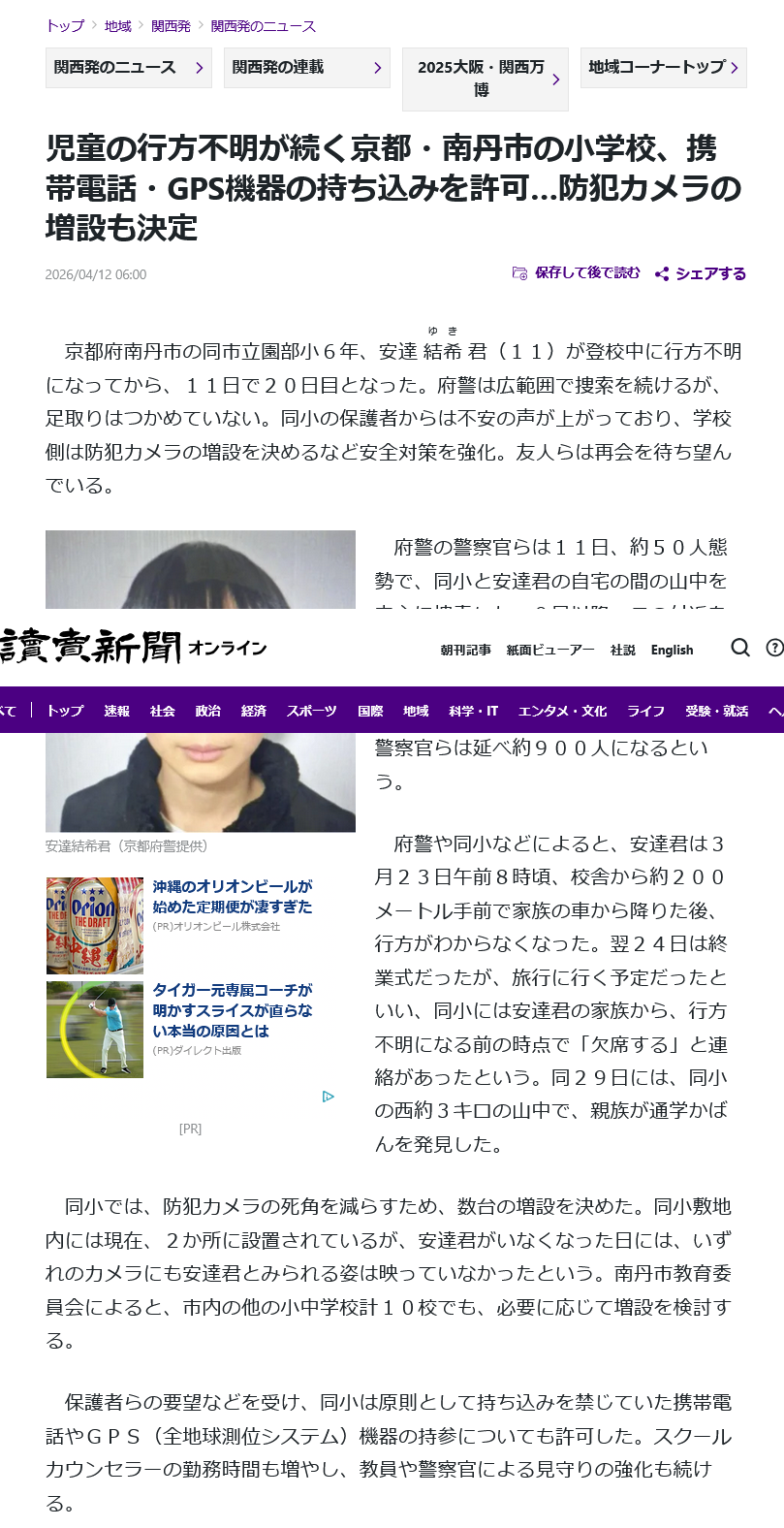 | … | 111無念Nameとしあき26/04/12(日)22:59:21No.1400467928+「結希くんに関する最後の情報は、『父親が23日の朝8時ごろ、園部小学校のグラウンドに隣接する学童施設の駐車場に送迎した』というものです。 |
