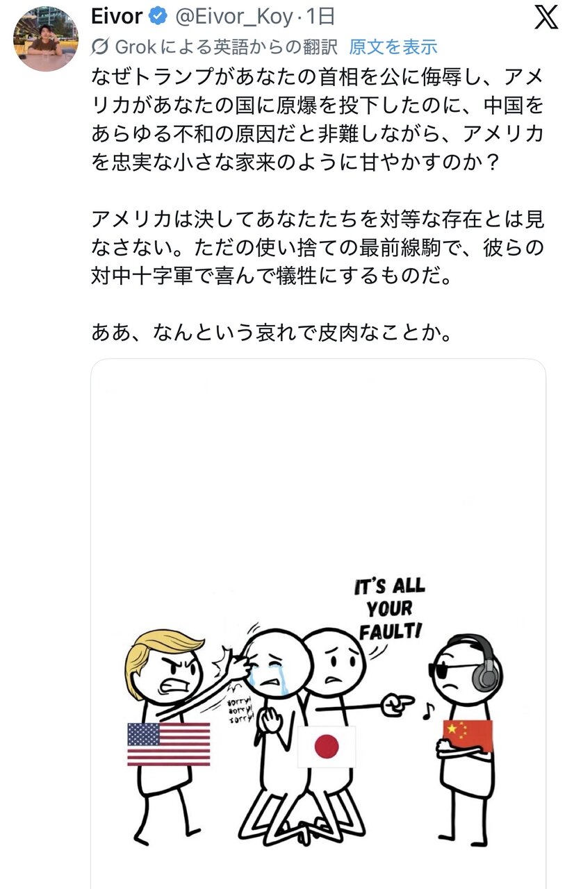 | … | 112無念Nameとしあき26/04/13(月)11:40:23No.1400542682+あまりにも日本が従順なメス奴隷すぎて |