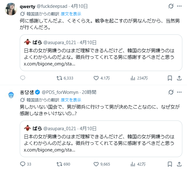 | … | 44無念Nameとしあき26/04/13(月)12:45:33No.1400555147+>世界でどの国を信用したいかと聞かれれば韓国しか無いわけだが |