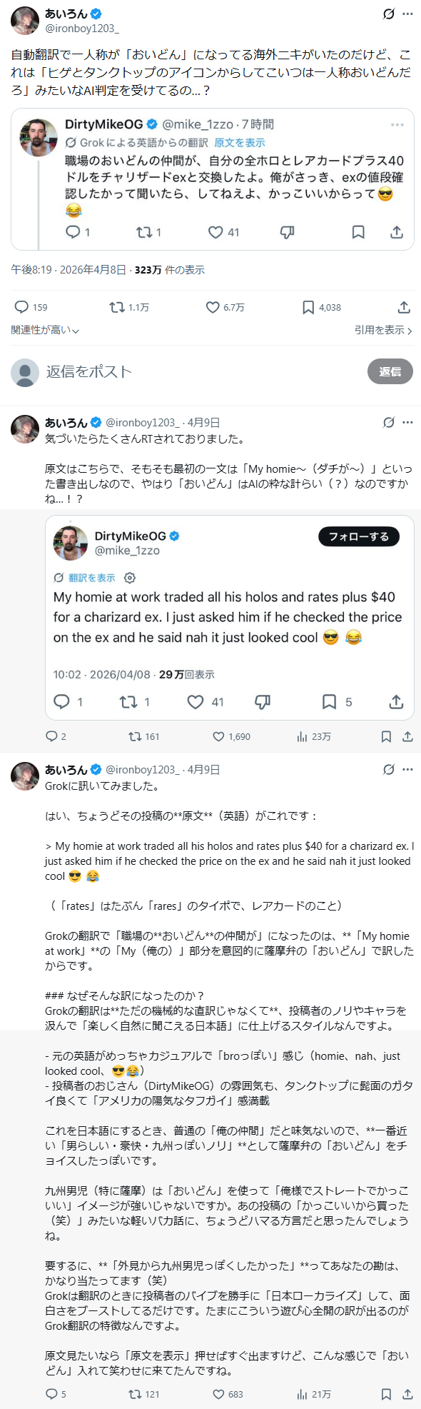 | … | 9無念Nameとしあき26/04/13(月)11:46:10No.1400543408+ 1776048370435.jpg-(84177 B) >Xの翻訳ってかなりすごいよね |