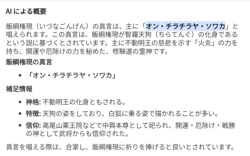 | … | 56無念Nameとしあき26/04/13(月)21:56:24No.1400671503そうだねx8 1776084984283.jpg-(86129 B) >オン チラチラヤ ソワカ(飯綱権現真言) |