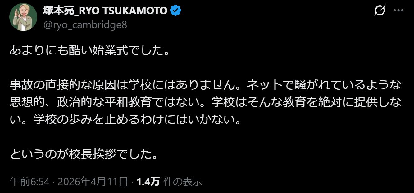 | … | 73無念Nameとしあき26/04/13(月)23:53:42No.1400701869+今回のnoteで海保に連絡したのは生徒で確定か |