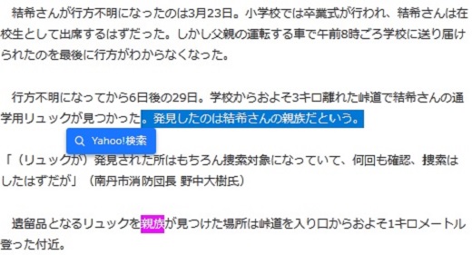 | … | 123無念Nameとしあき26/04/14(火)01:03:27No.1400713433+ 1776096207210.jpg-(56346 B) 塗れていないリュックサックは何度も捜索した場所から親族が偶然発見したもの |