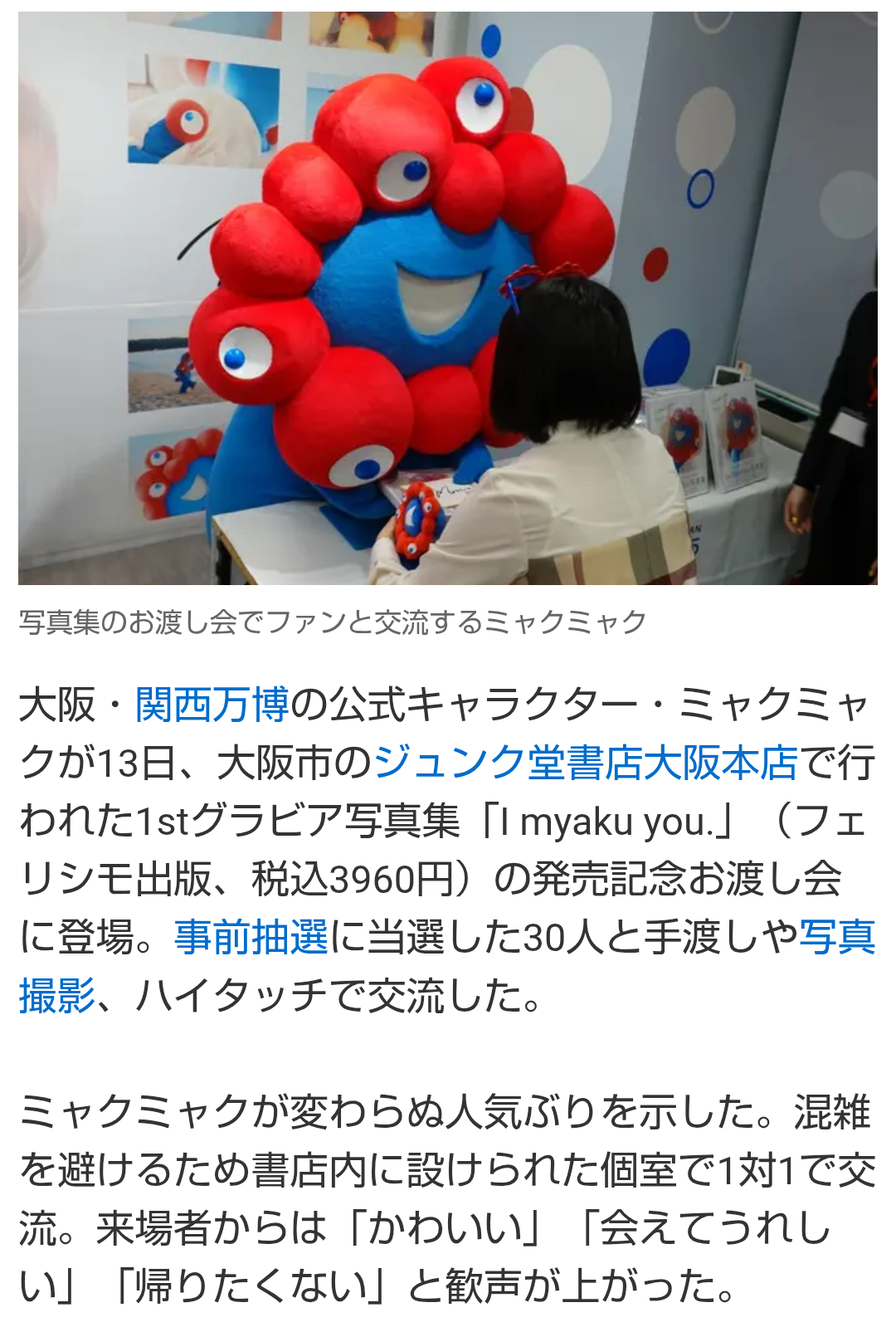 | … | 46無念Nameとしあき26/04/14(火)13:34:15No.1400785497+ 1776141255453.png-(267912 B) なおミャクミャクから直接みなさまへの写真集お渡し&握手会の事前抽選は既に終了しております |