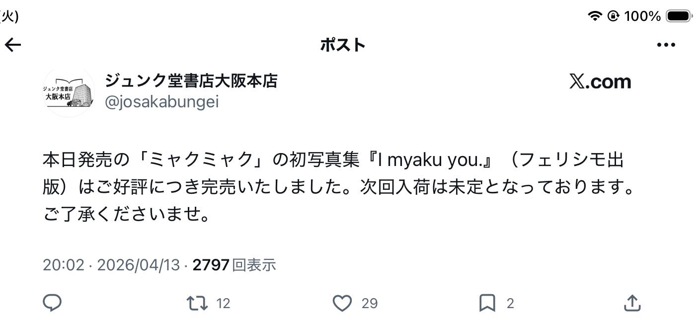 | … | 48無念Nameとしあき26/04/14(火)13:35:02No.1400785624+>大阪難波や東京日本橋で売り切れ書店がチラホラ出ている… |