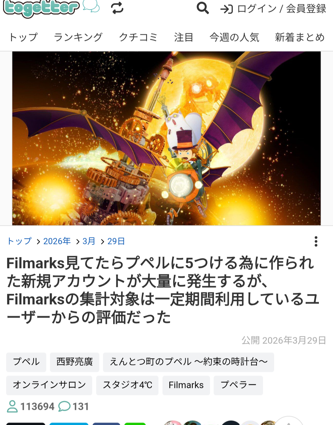 | … | 79無念Nameとしあき26/04/14(火)13:20:48No.1400783101+>子供はプペルなんか見ないよ |