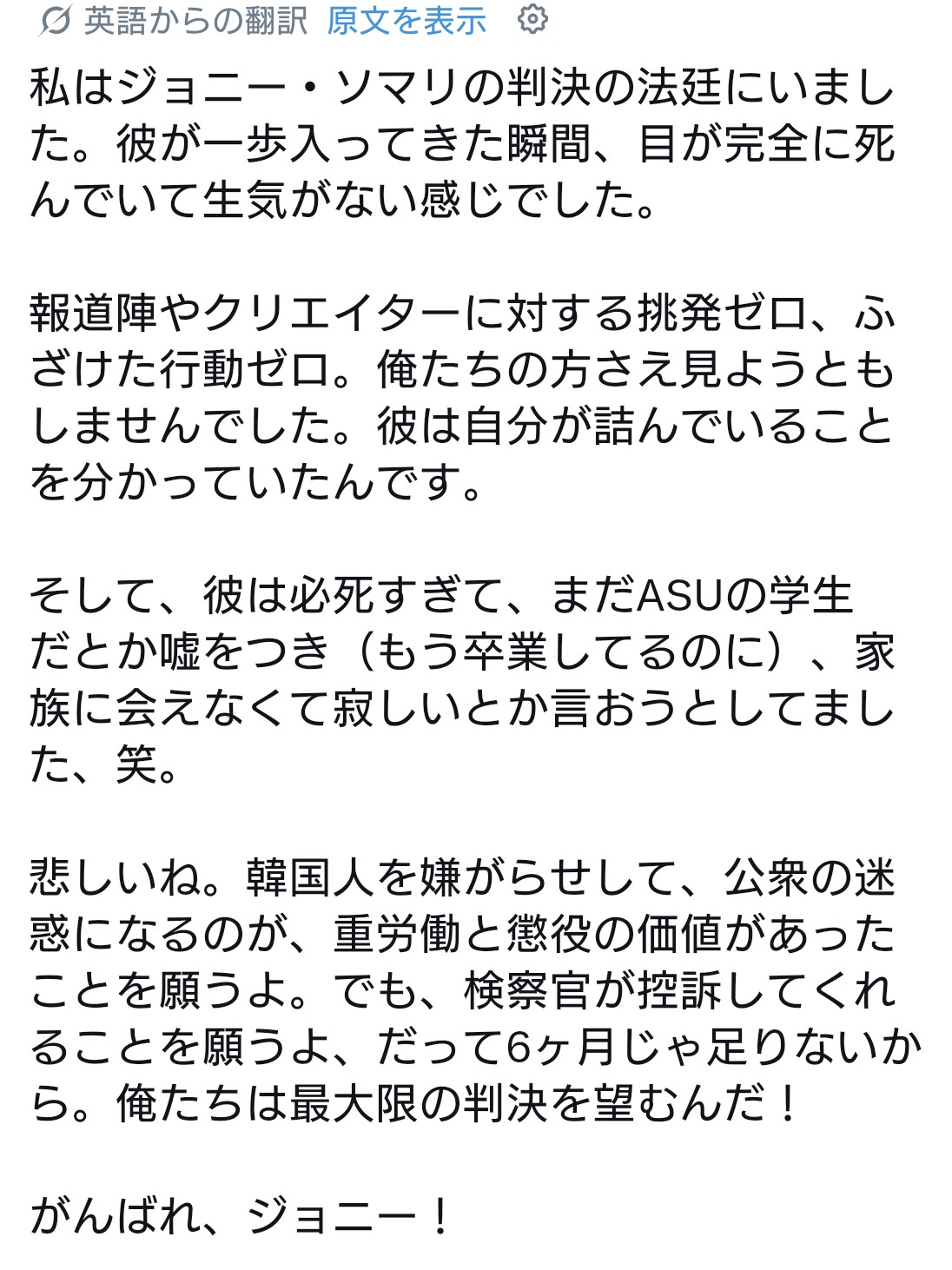 ジョニー・ソマリさん、無事有罪判決