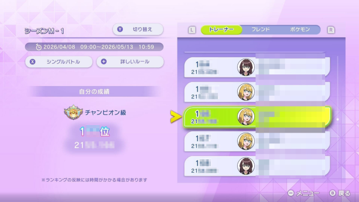 | … | 138無念Nameとしあき26/04/15(水)16:13:48No.1401037632+300位は暇な時間全部ポケモンにつぎ込んだ上で一生かかっても到達できるか怪しいラインな気がする |