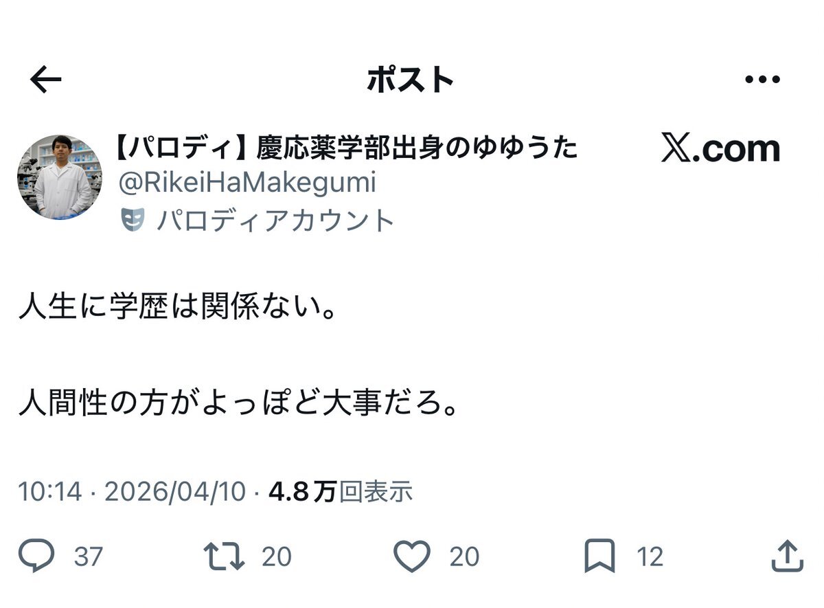 | … | 47無念Nameとしあき26/04/15(水)14:30:18No.1401020467+学歴オナニーやん |