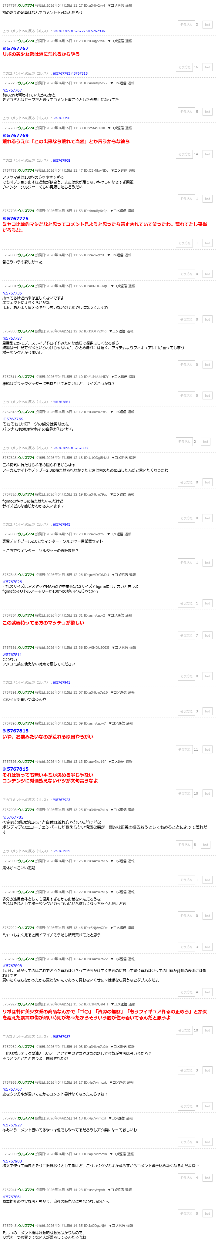 | … | 20無念Nameとしあき26/04/15(水)14:59:35No.1401025272+なんでRABBIT小隊の何かが出る度に荒れるんだ |