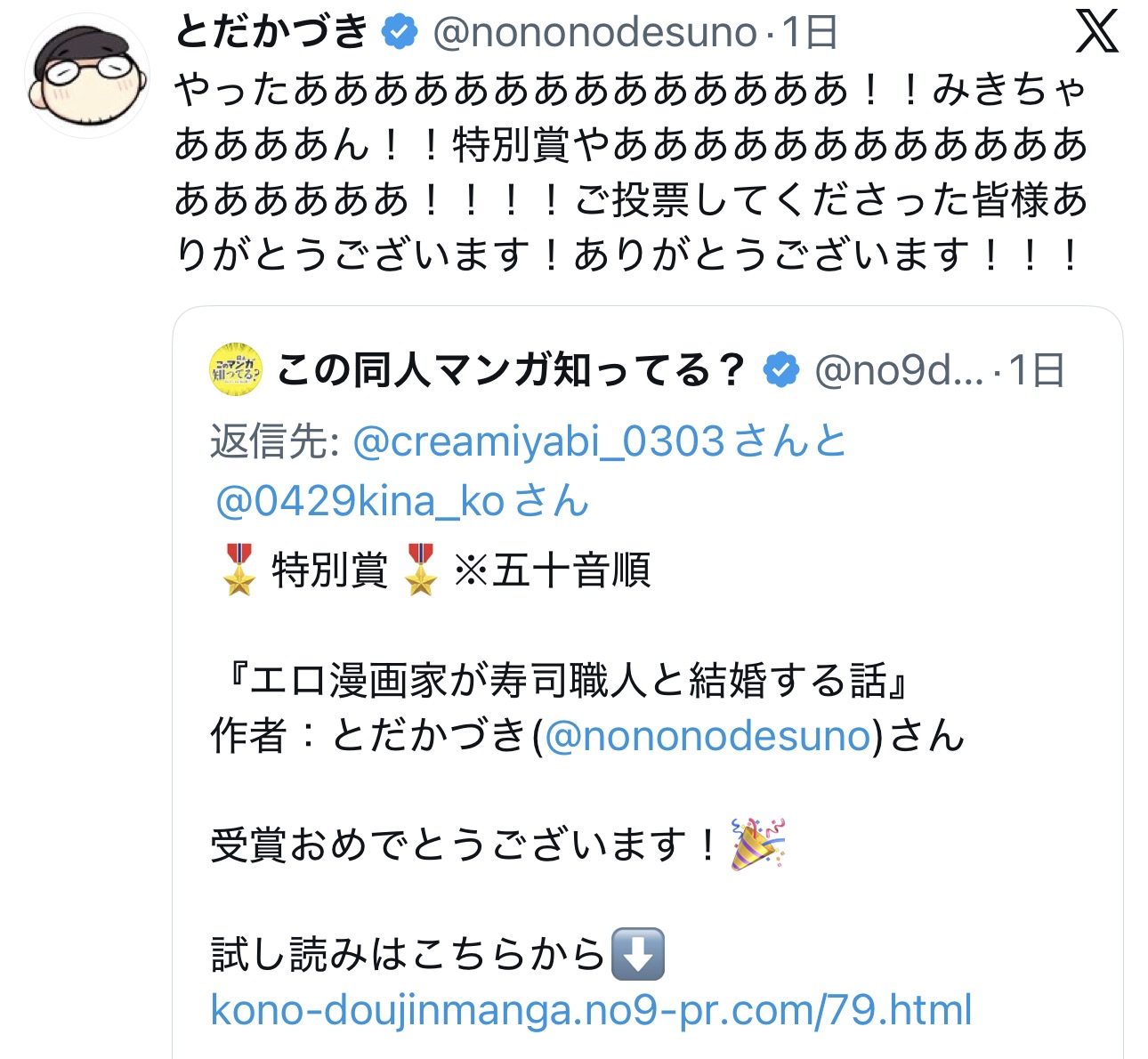 | … | 36無念Nameとしあき26/04/15(水)21:22:06 IP:122.222.*(vectant.ne.jp)No.1401113235そうだねx1>漫画家歴15年(作品不明)を宣伝してたミラクルな奴がいたらしく |