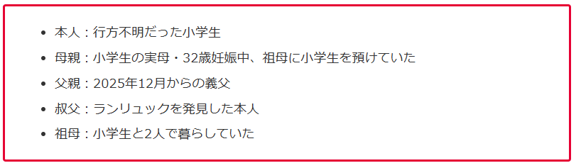 | … | 87無念Nameとしあき26/04/15(水)22:26:32No.1401135455そうだねx1これ系で保護者が怪しいよねって話してて本当に保護者だったパターンって逆に珍しくない? |