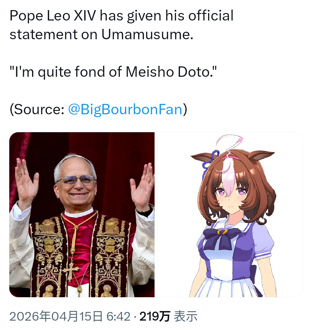 | … | 85無念Nameとしあき26/04/16(木)12:40:46No.1401237798+>たまに有名ハリウッド俳優がウマ娘にハマってそのTシャツ着てるとかコラが真実であるかのように流れたりするので海外アカウントから情報は半分ガセかもって気持ちで見た方がいいぽん |