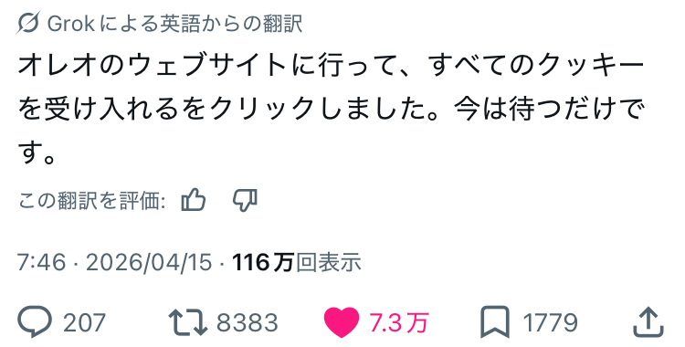 | … | 34無念Nameとしあき26/04/16(木)11:25:02No.1401223845そうだねx14 1776306302454.jpg-(441283 B) https://x.com/atsugirisakitan/status/2044435071474737366 |
