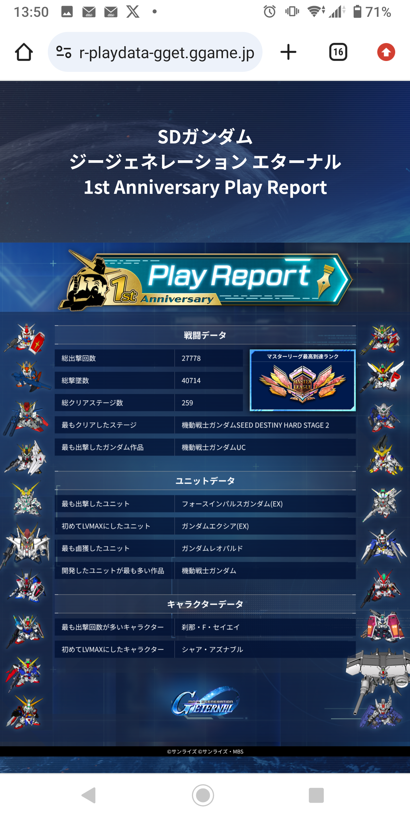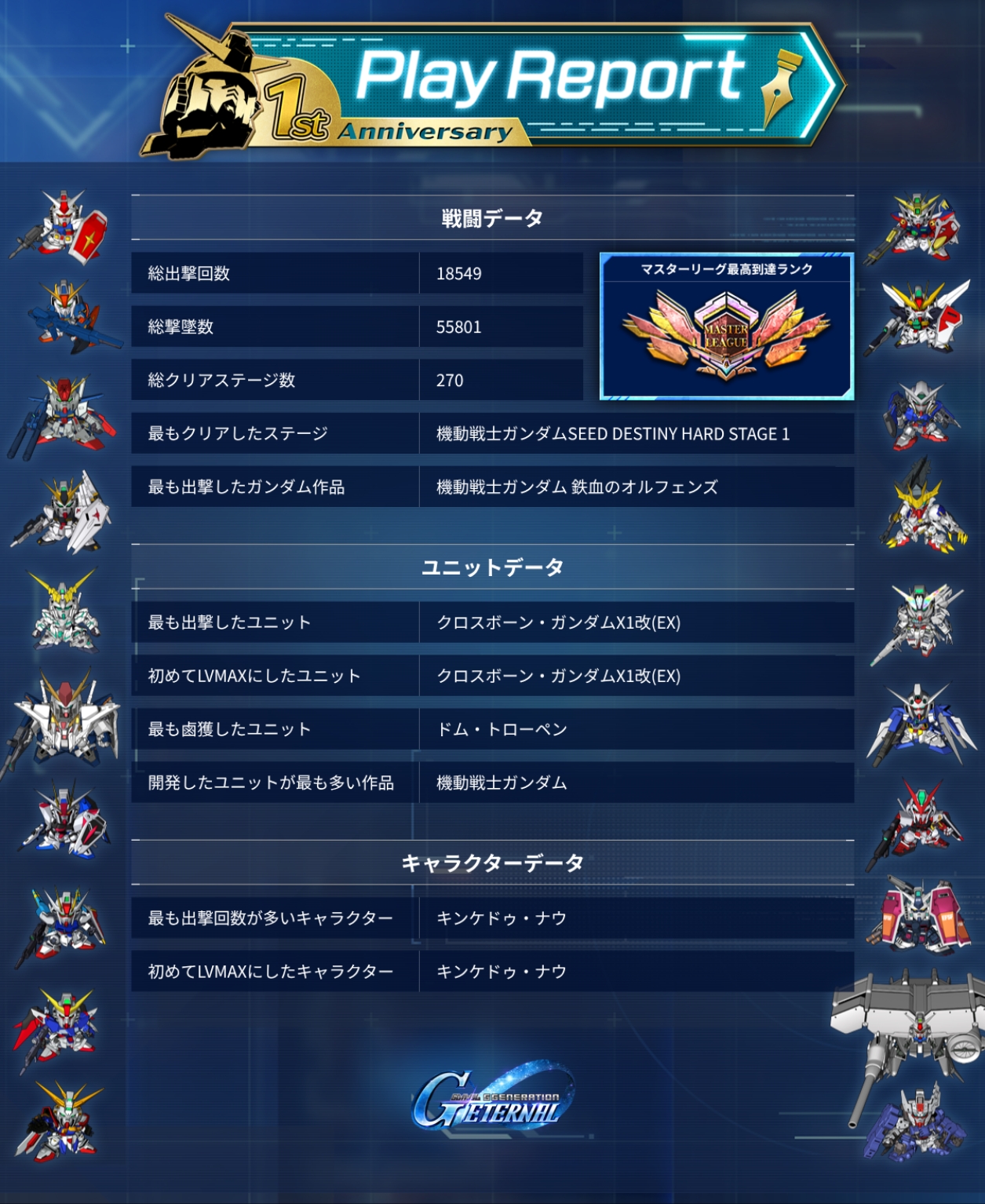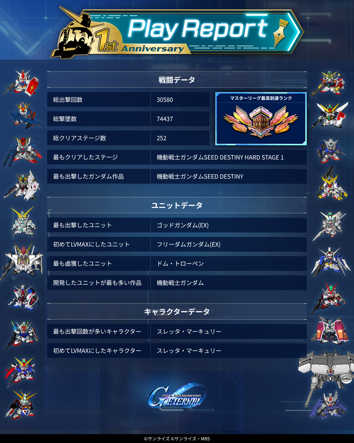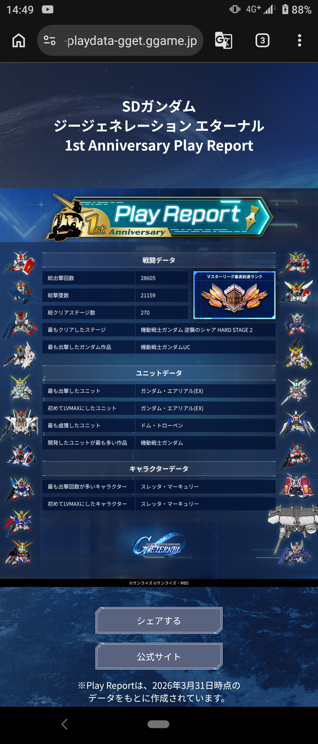 | … | 17無念Nameとしあき26/04/16(木)13:27:30 ID:8X5Og3I6No.1401246631そうだねx1 1776313650971.png-(1783145 B) 最多出撃数もエクシアだったらな |