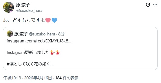 | … | 105無念Nameとしあき26/04/16(木)22:09:35 ID:JXUdFmA.No.1401356463そうだねx1すずちゃんインスタ更新にゃあ |