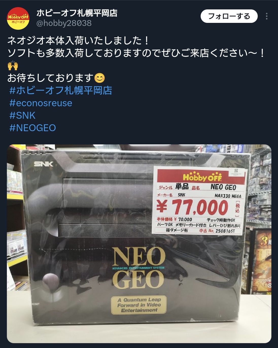 | … | 34無念Nameとしあき26/04/17(金)14:00:47No.1401462422+ 1776402047544.jpg-(186046 B) ネオジオ本体買い取ってる街の中古屋はどうなんだよ! |