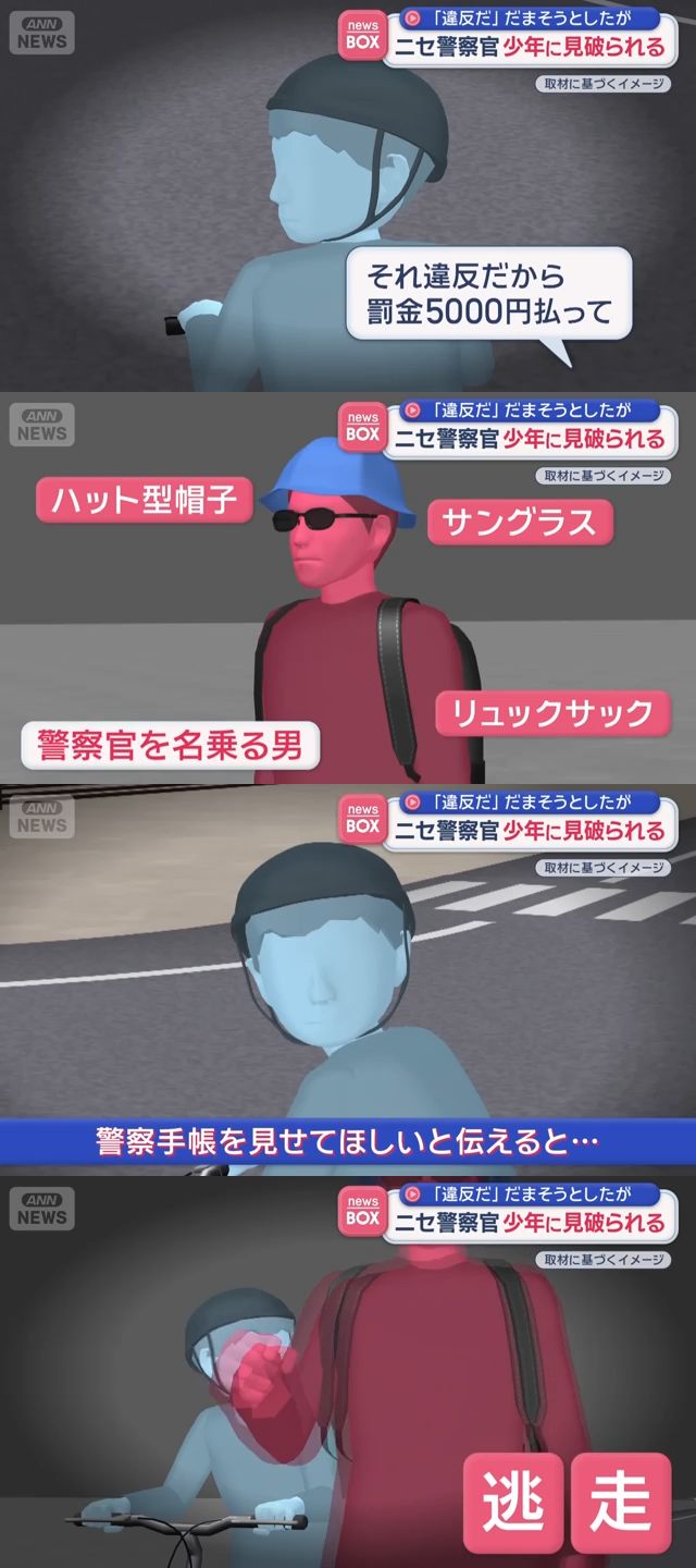 | … | 1無念Nameとしあき26/04/17(金)20:21:55No.1401532066+ 1776424915338.jpg-(112107 B) 中学生に違反金5000円を要求するも警察手帳を見せろと言われ逃走 |