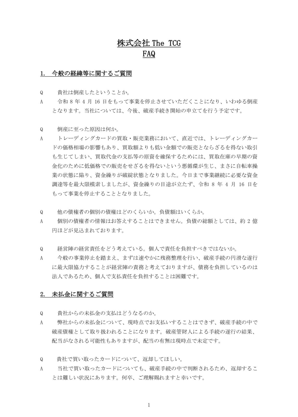 トレカショップ破産で阿鼻叫喚