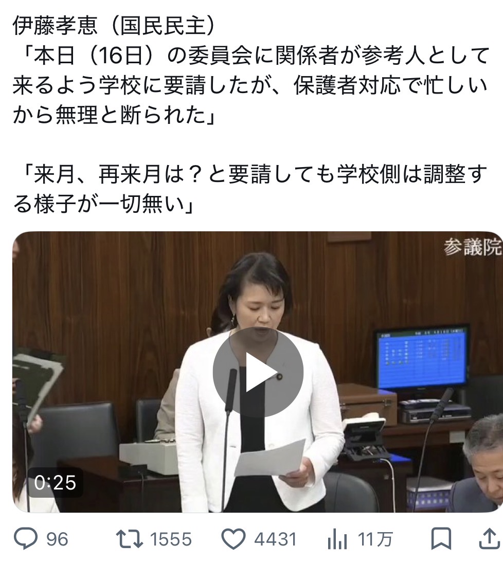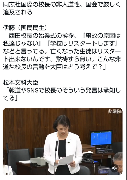 同志社/同志社国際高校を参議院に参考人として呼んだが断られて調整する気も無い模様