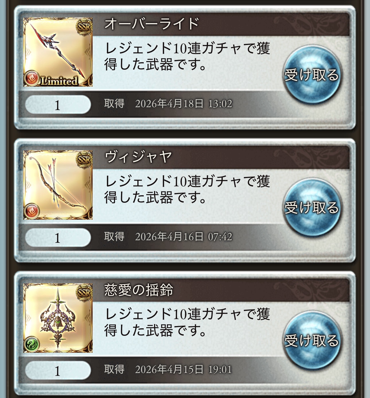| … | 83無念Nameとしあき26/04/18(土)15:47:01 ID:.JJOpK.oNo.1401712231+ママは出なかったけどリミゼタ槍の3本目が出てきた |