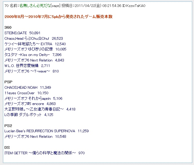 | … | 50無念Nameとしあき26/04/18(土)22:53:16No.1401826394+名前忘れたけどシュタゲの後に出たやつは結構売れてたよね |