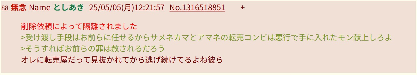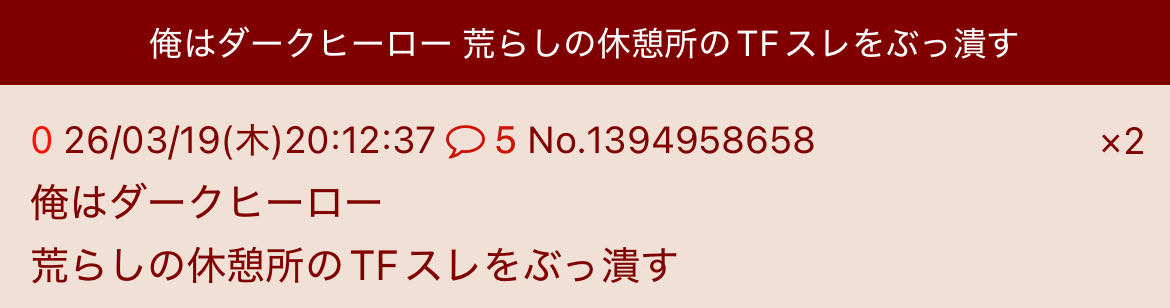 | … | 88無念Nameとしあき26/04/18(土)22:44:19No.1401823845そうだねx4荒らすなと何度言われようがやめない |