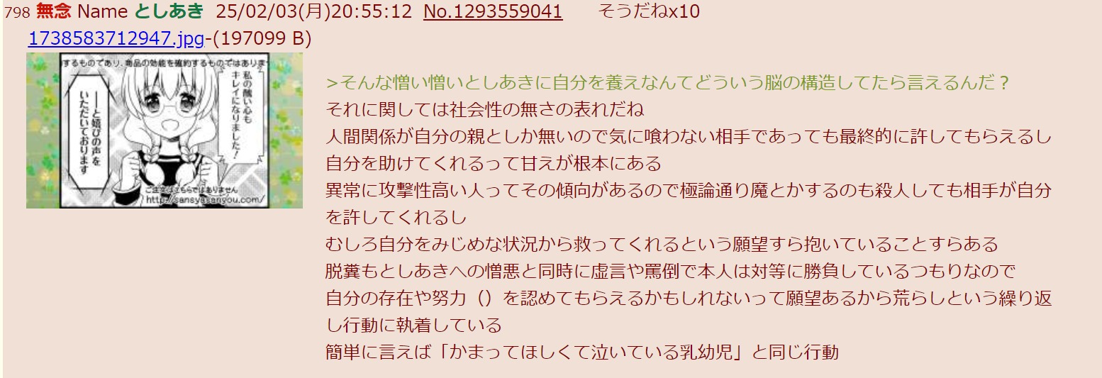 | … | 269無念Nameとしあき26/04/18(土)23:45:01No.1401840874そうだねx4>こうやって嘘付きの証拠でても見苦しく認めないとかここまでくるともう病気だな |
