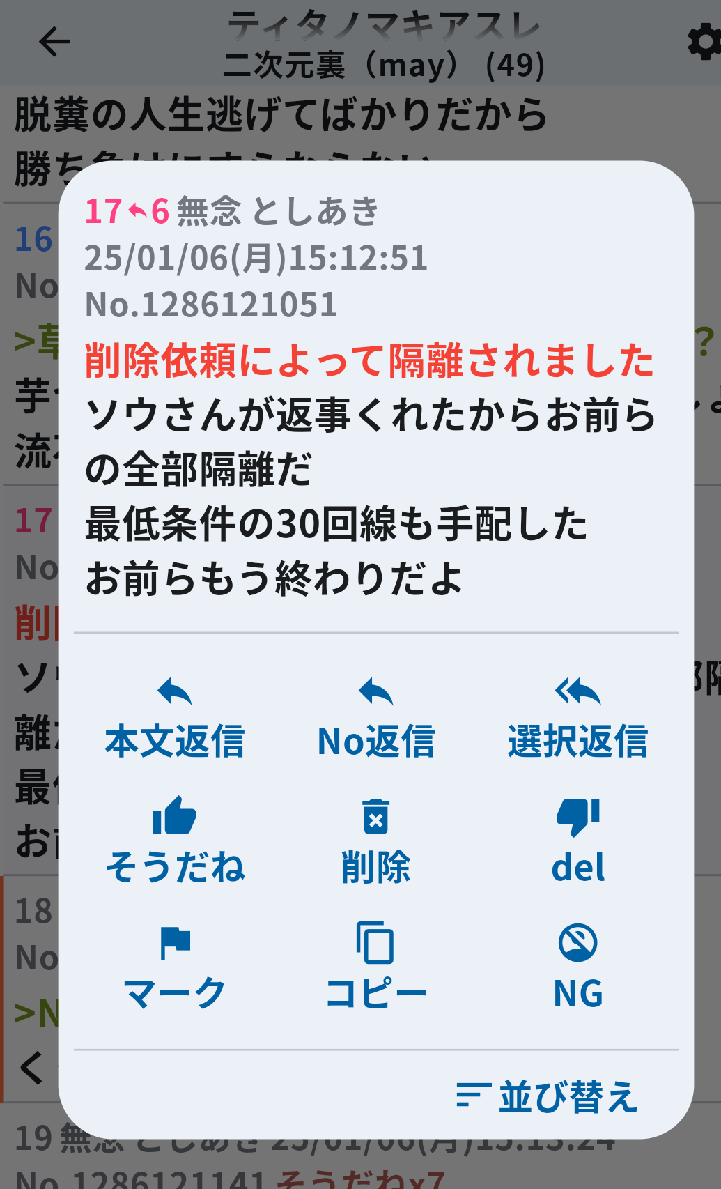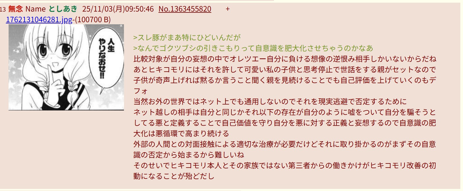 | … | 53無念Nameとしあき26/04/18(土)22:36:04No.1401821424+ふたばに入り浸りの死んだも同然を気付けないドアホ |
