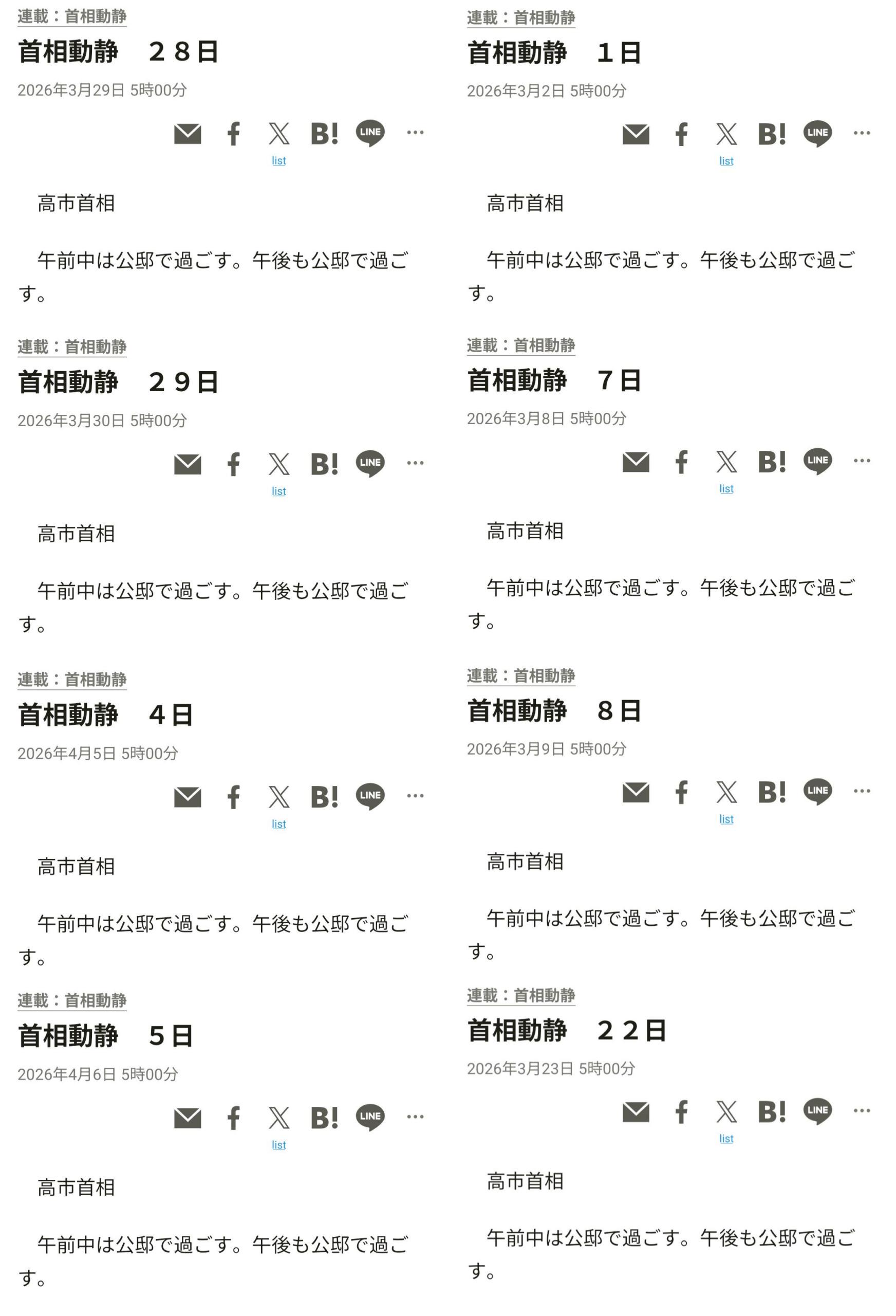 | … | 371無念Nameとしあき26/04/18(土)23:52:52No.1401842785+首相として仕事してるのに文句言いすぎだろ |