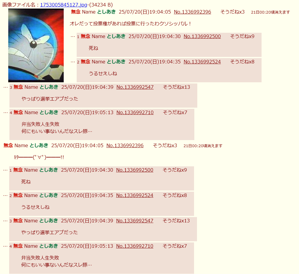 | … | 3無念Nameとしあき26/04/19(日)16:21:13 ID:NVKv.SC6No.1401989585そうだねx3>ゴミスレ立てるな |