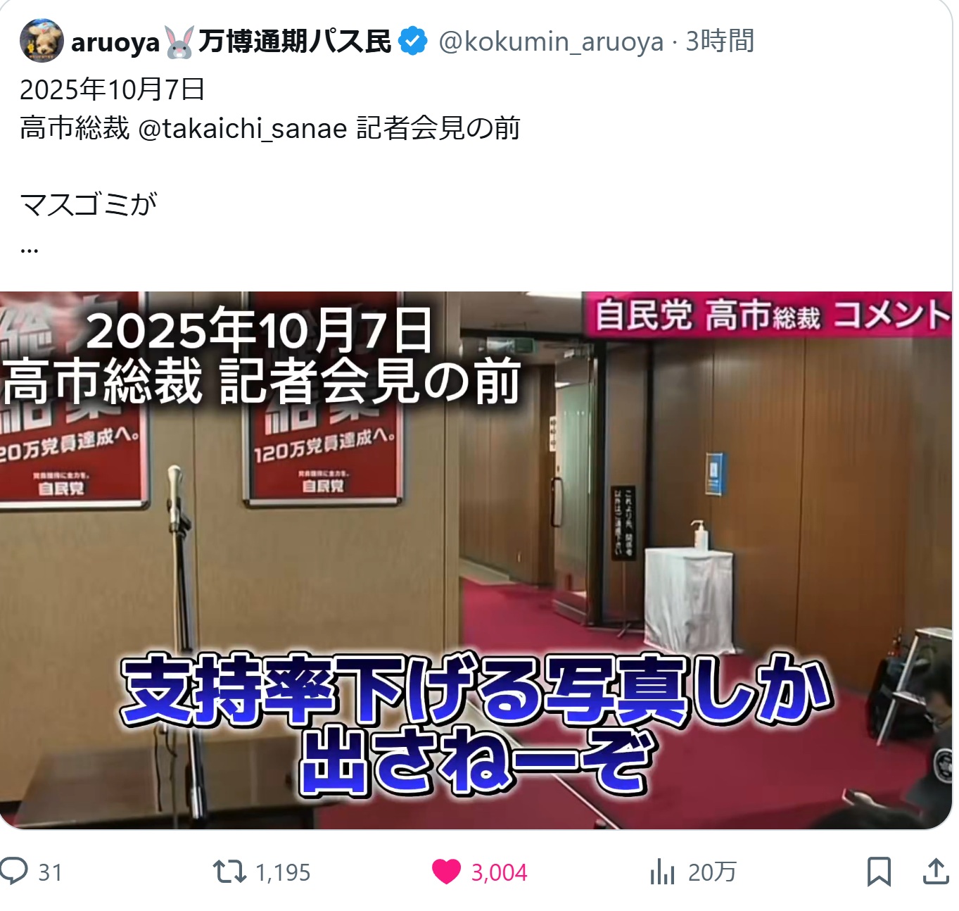 | … | 96無念Nameとしあき26/04/19(日)21:44:30No.1402083113そうだねx1パヨ「高市はトランプの言うこと聞くだけの腰巾着!」 |