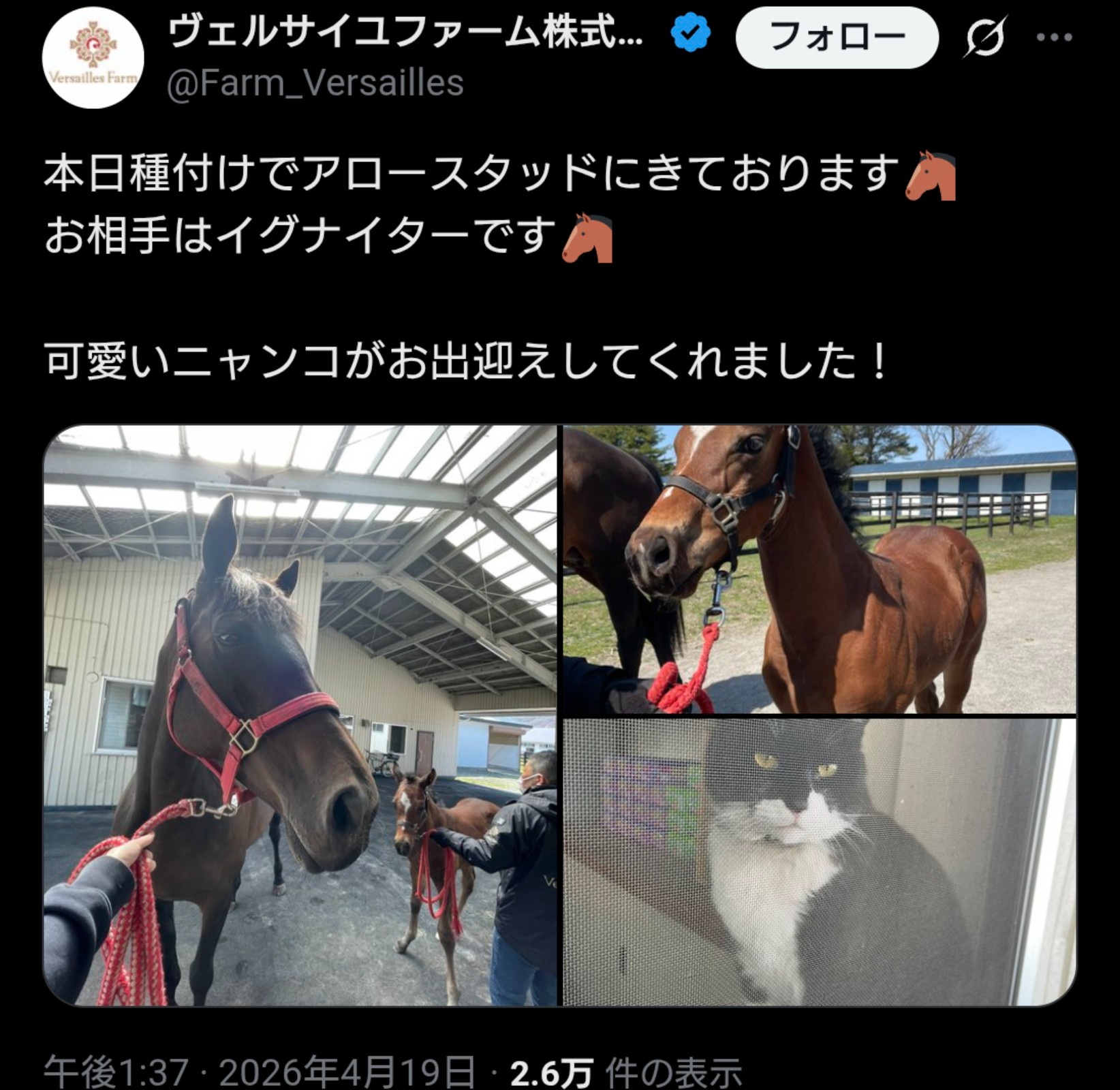 | … | 13無念Nameとしあき26/04/20(月)09:25:30No.1402162918+ 1776644730128.jpg-(48742 B) https://x.com/KyotoKeibaJo/status/2046015994015969414 |