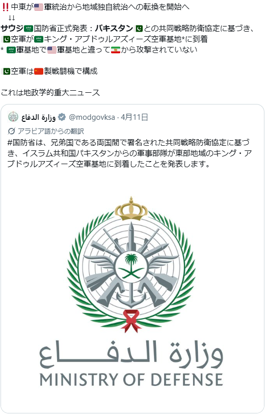| … | 55無念Nameとしあき26/04/20(月)11:59:21No.1402182964+ 1776653961117.png-(137546 B) イランは次の攻撃でサウジアラビア基地のパキスタン駐留軍を攻撃できるかが注目ポイント |