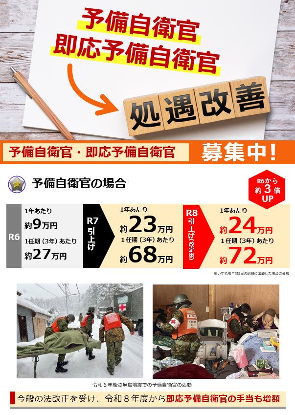 | … | 9無念Nameとしあき26/04/20(月)16:42:06No.1402228983そうだねx1 1776670926061.jpg-(122845 B) 年間5日間訓練するだけの予備自も24万円もらえるようになる |