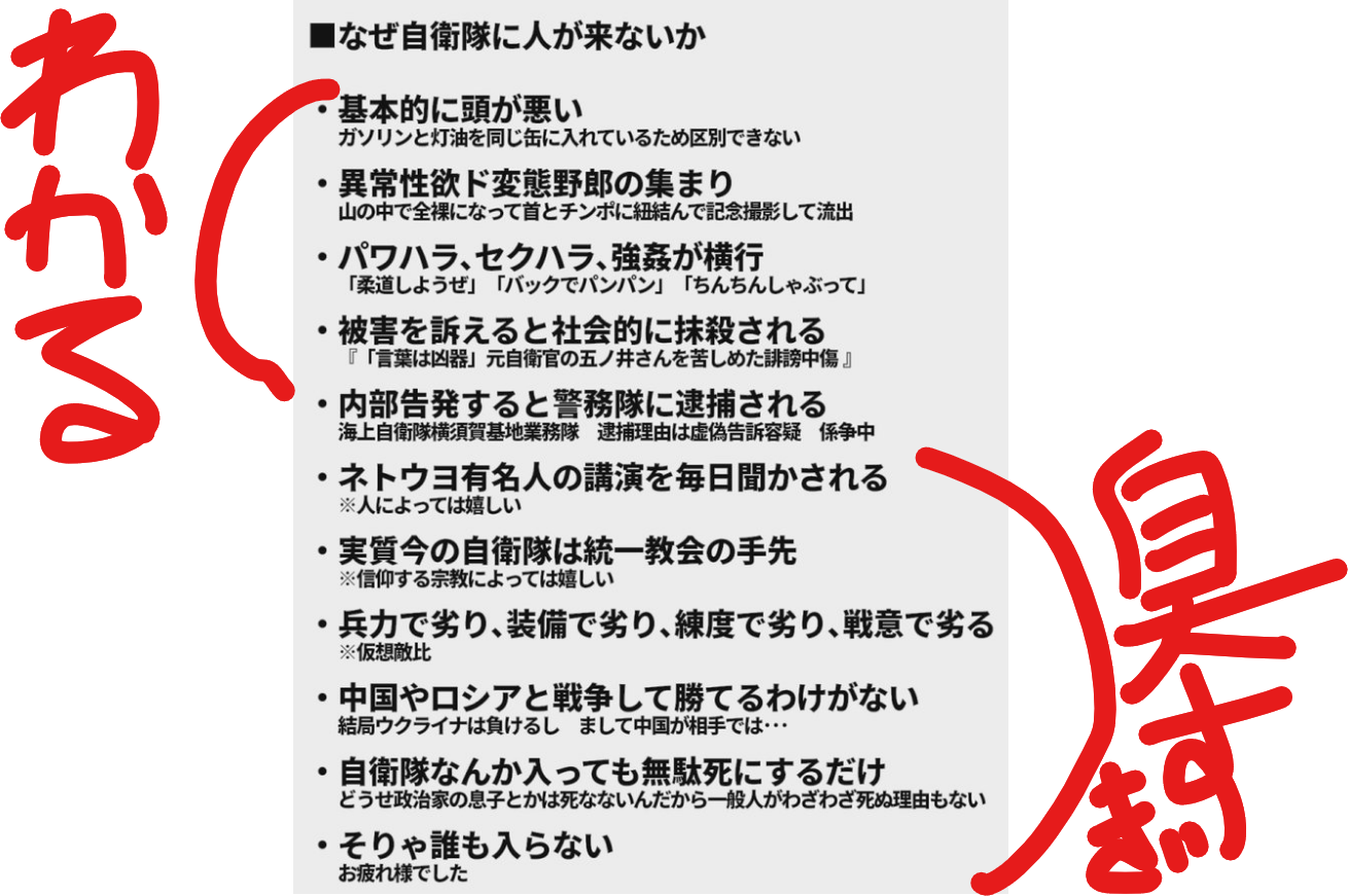 | … | 77無念Nameとしあき26/04/20(月)17:12:01No.1402235484+自衛官の数今23万人くらいだっけ |