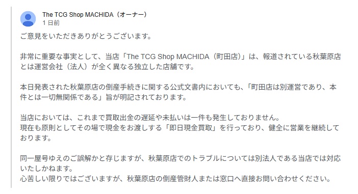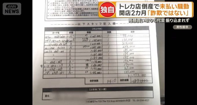 秋葉原のトレカ店、開店2ヶ月で破産へ 買取金の未払い、支払不能に波紋…詐欺や計画倒産の指摘は否定