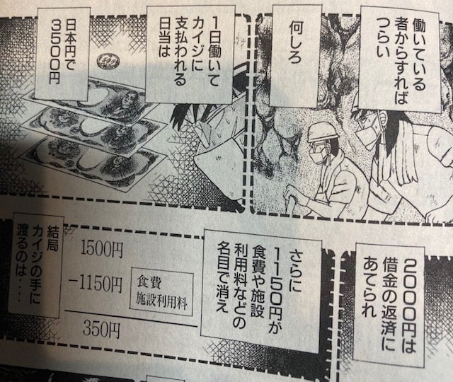 | … | 64無念Nameとしあき26/04/21(火)17:49:08No.1402454852そうだねx1>衣食住といっても不味い飯で食費は取られてるし衣は作業着で住は薄い布団雑魚寝でシャワーも流れ作業 |
