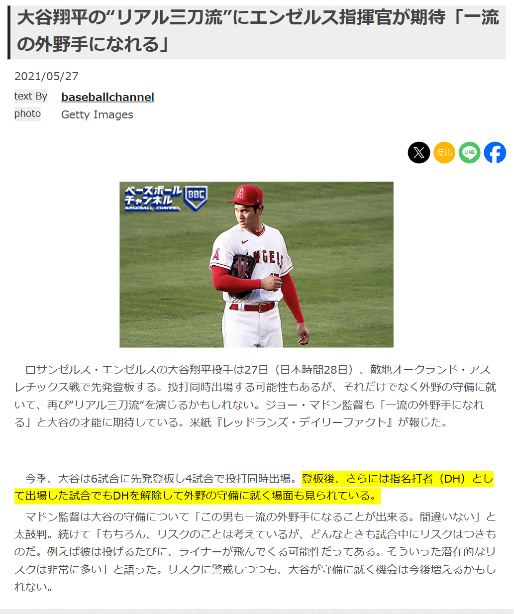 | … | 16無念Nameとしあき26/04/21(火)16:42:34No.1402444561+>大谷の二刀流ルールを批判。他球団も二刀流選手を加えることはできるが、とさらに聞かれると「だけどそんな選手は他にいない。1球団だけがその選手のために違うルールを与えられている」と語気を強めた。 |