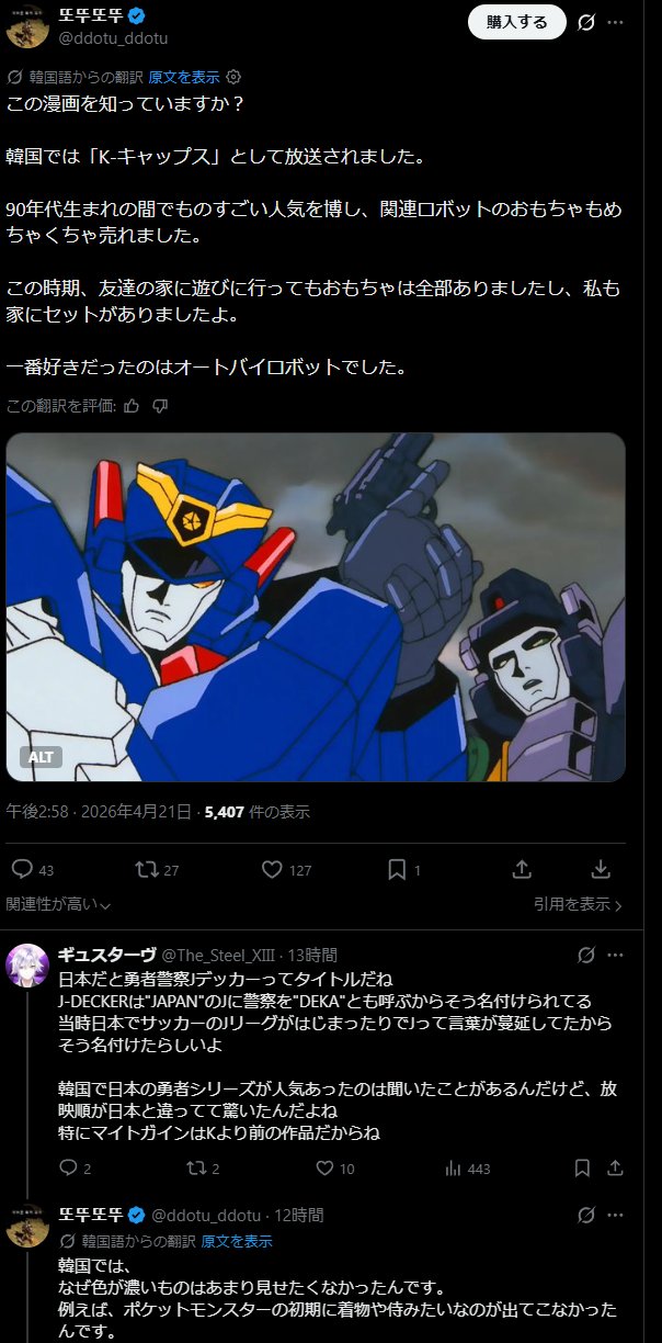 | … | 1無念Nameとしあき26/04/22(水)05:39:11No.1402571682+キャプテン翼は韓国人だし |