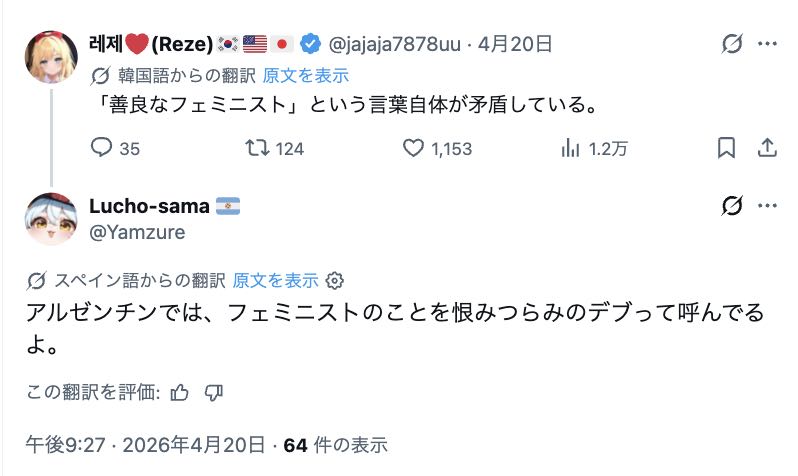 | … | 82無念Nameとしあき26/04/22(水)17:50:16No.1402664760+>やっぱミソジニーが理由なんかな |