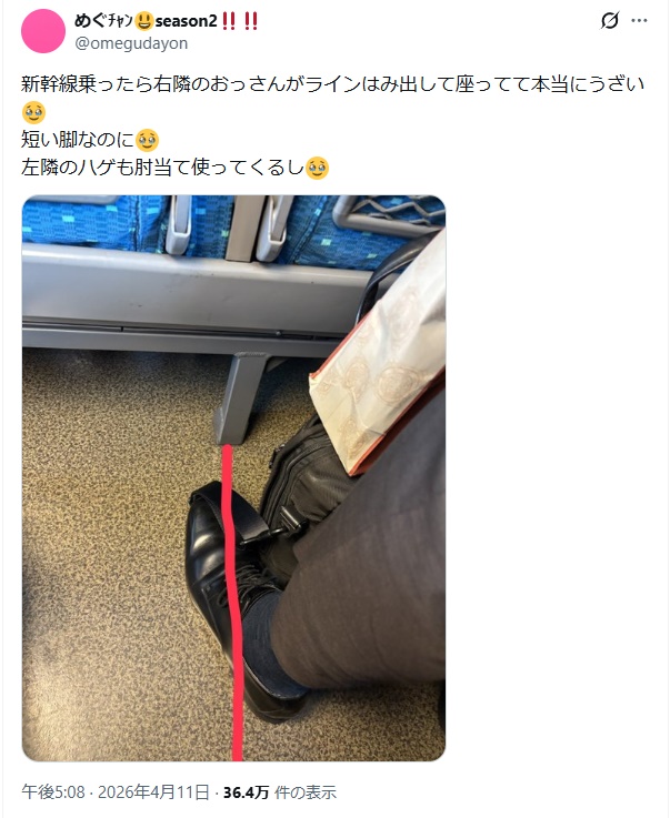 | … | 22無念Nameとしあき26/04/23(木)07:37:34No.1402788945+ 1776897454223.jpg-(310679 B) チー牛、またやらかす。今度は新幹線で女性にキモがられる |