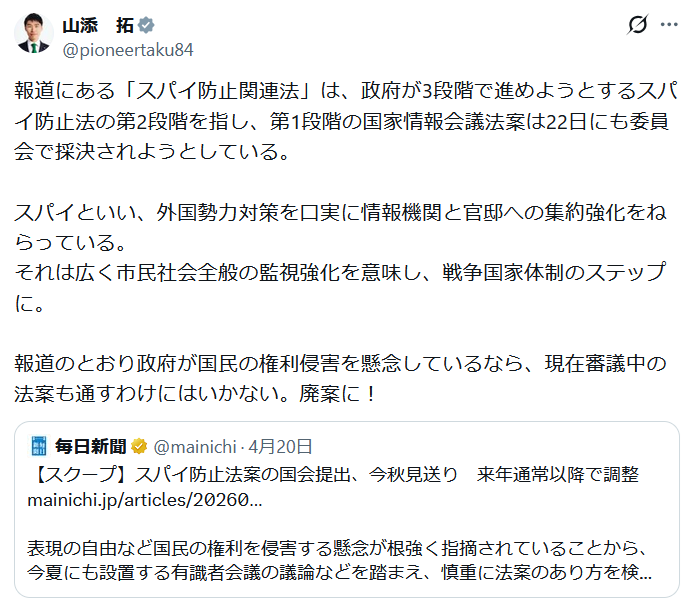| … | 84無念Nameとしあき26/04/23(木)07:09:09No.1402786465+>共産党・山添拓議員 |