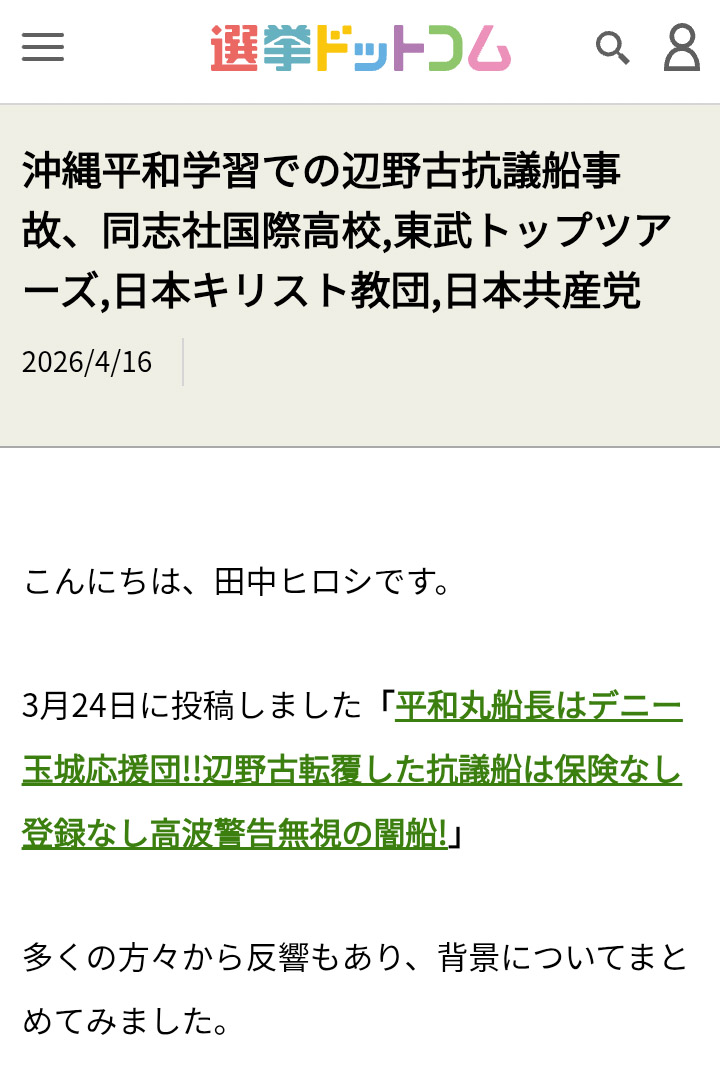 | … | 42無念Nameとしあき26/04/23(木)06:54:13No.1402785367そうだねx18辺野古転覆事件にはお口チャックするくせに |